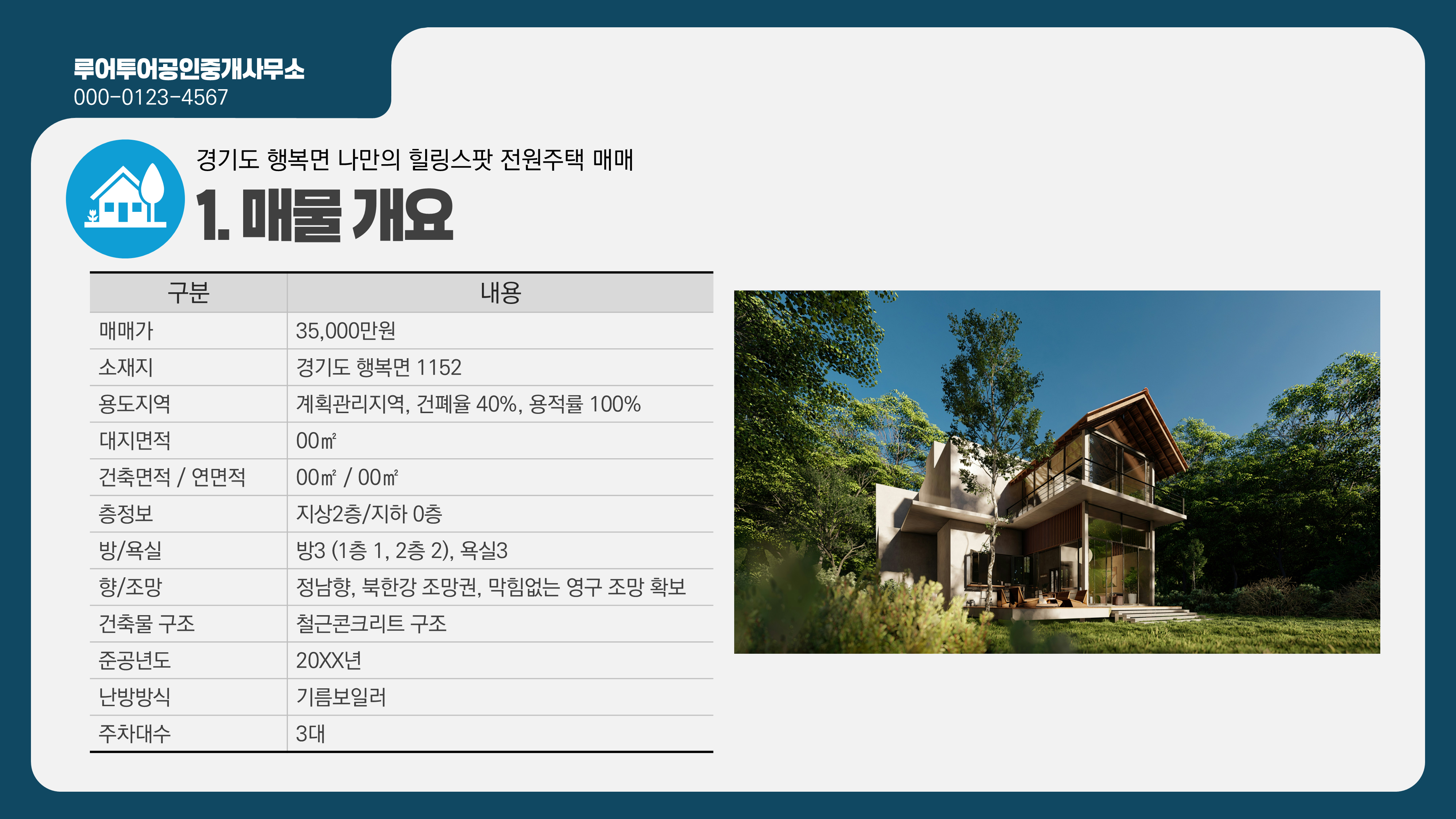1191 전원주택 매물 소개 ppt 양식 단독주택 부동산매물 파워포인트 템플릿 : 루어투어 PPT템플릿