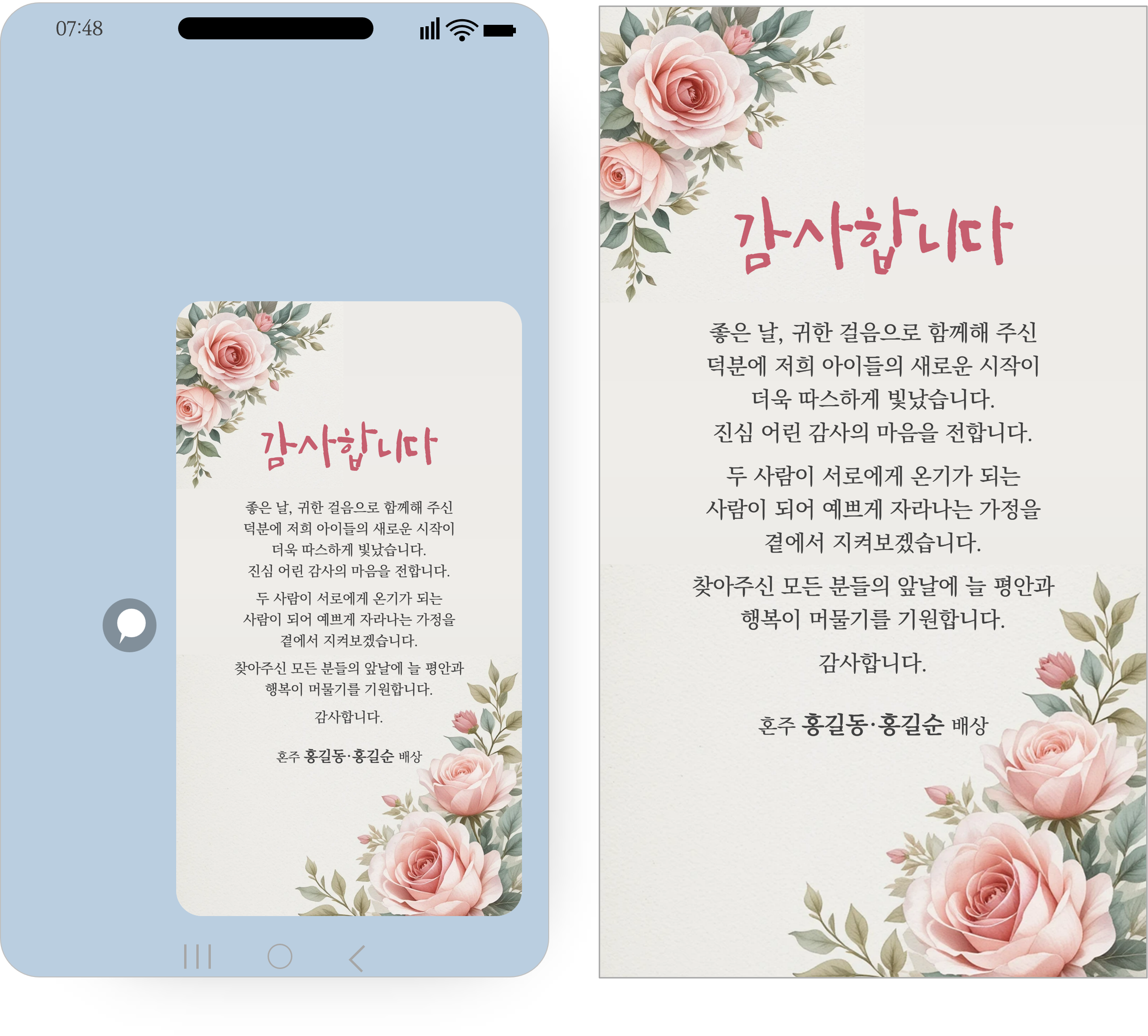 감성적인 결혼 감사 인사를 쉽고 예쁘게 전달하고 싶다면